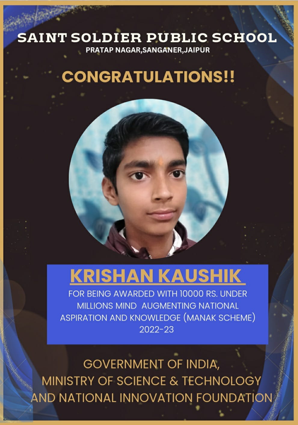 Congratulations!!! Mst. ASHWIN GOYAL for Securing Merit in State Talent Search Examination 2024