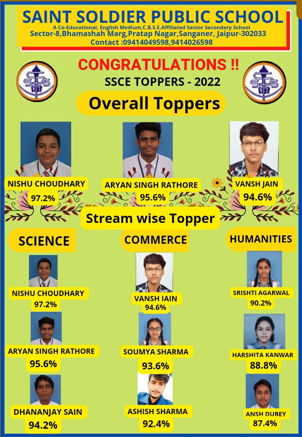 Heartiest Congratulations!!! SSCE TOPPERS -RANK-1@SSPS