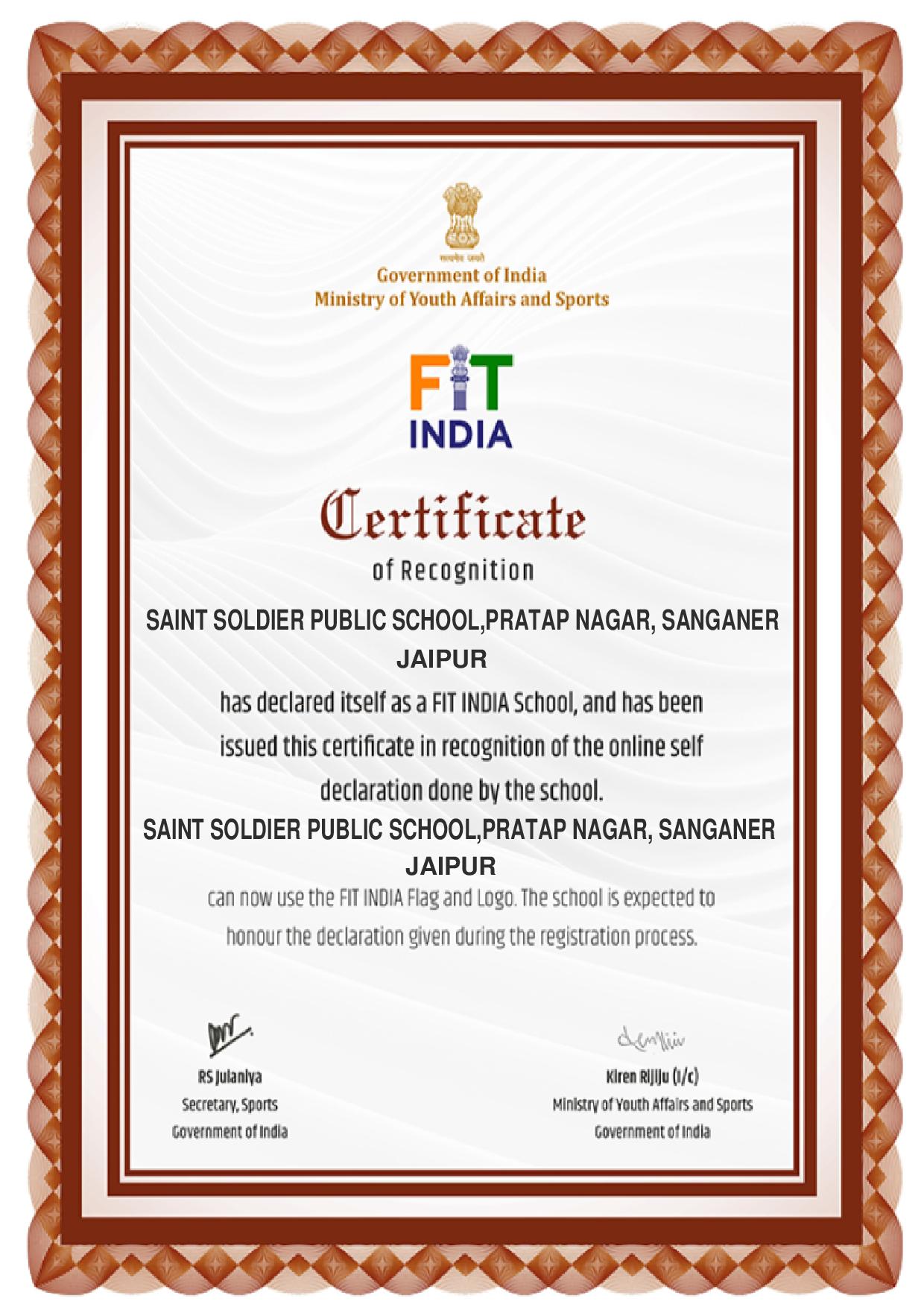 FIT INDIA CERTIFICATE