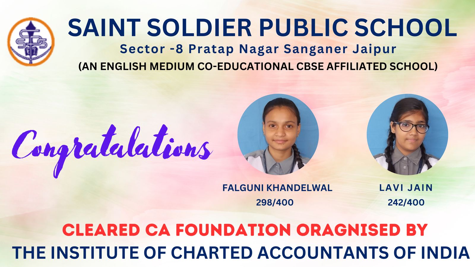 CONGRATULATIONS!!! FOR CLEARED CA FOUNDATION ORGANISED BY THE INSTITUTE OF CHARTED ACCOUNTANTS OF INDIA