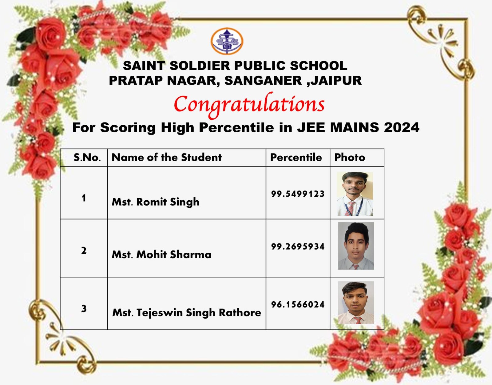 CONGRATULATIONS!!! FOR SCORING HIGH PERCENTILE IN JEE MAINS 2024