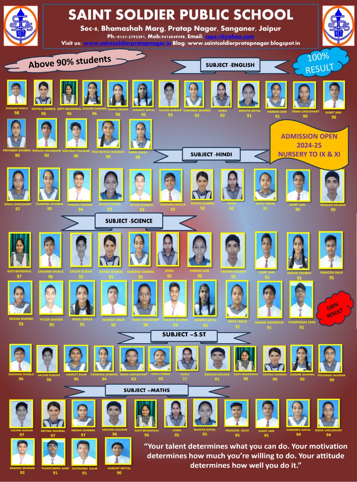 X CLASS TOPPERS 2024-25- CONGRATULATIONS!!! FOR 100% RESULT