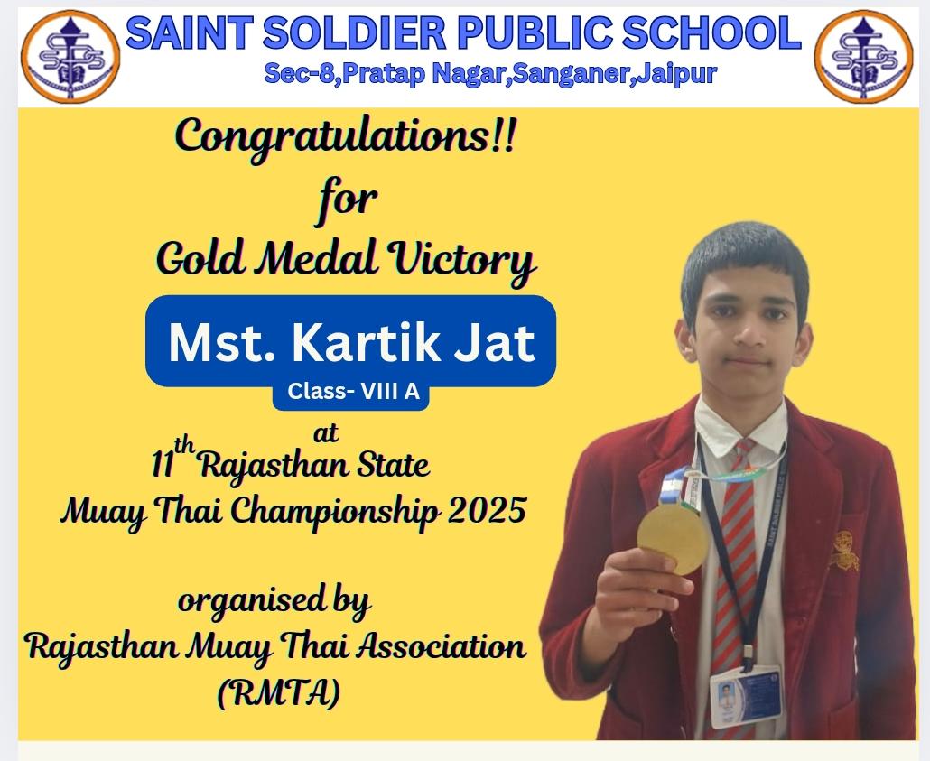 Congratulations!!! for Gold Medal Victory, Mast. Kartik Jat at Rajasthan State Mauy Thai Championship 2025