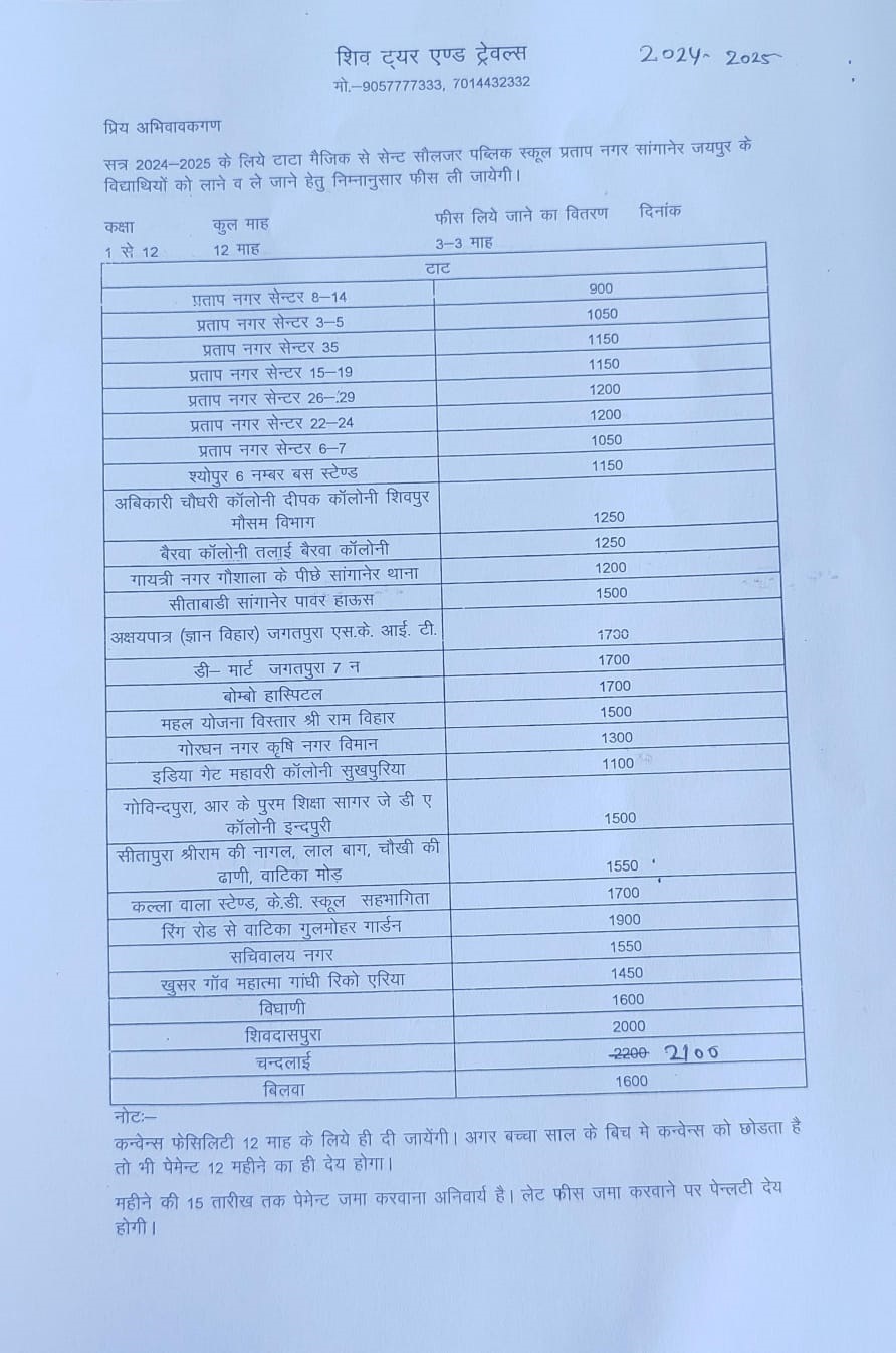 Vans hired on contract basis. These rates will be applied with effect from 1st April 2021 onwards.